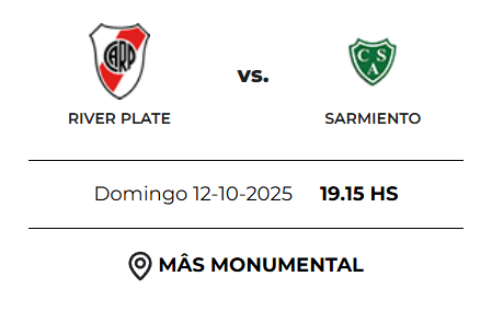 El Millonario recibirá el 12 de octubre a Sarmiento por la 12° fecha del Clausura. En medio de la fecha FIFA, que le restará varios jugadores convocados, River buscará volver al triunfo en casa y con su gente. Todavía quedan entradas disponibles, tanto para Somos River como para no socios: