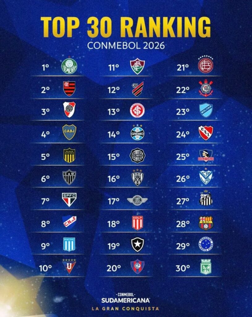 Uno de esos torneos será la Copa Sudamericana, certamen al que River volverá a jugar tras once años luego de no lograr la clasificación a la Copa Libertadores por ninguna de las vías posibles. En ese contexto, Conmebol publicó en las últimas horas el ranking oficial de clubes, un dato clave que incide directamente en el sorteo de la fase de grupos previsto para la semana del 18 de marzo.