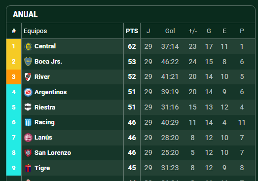 La nueva ubicación deja a River en zona de repechaje continental, detrás de Rosario Central, que con 62 puntos ya tiene asegurado su lugar en la fase de grupos del torneo más importante de Sudamérica. La situación se volvió aún más ajustada debido a que Argentinos Juniors (51) se encuentra apenas un punto por debajo, peleando también por meterse entre los tres primeros.