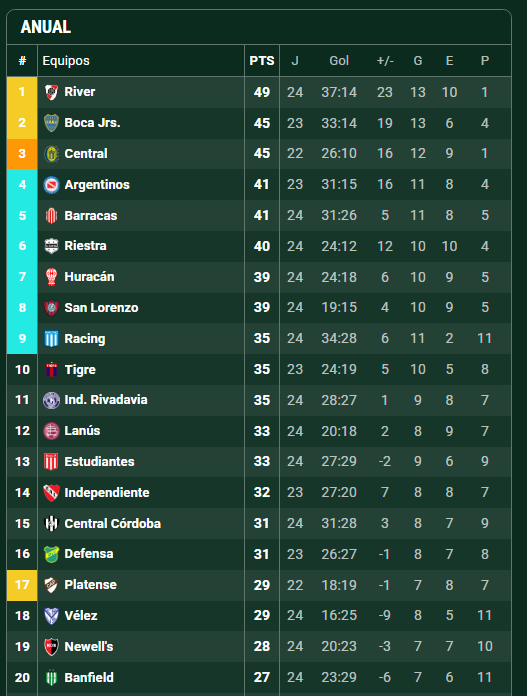 Más allá de lo que ocurra en los mano a mano de la Copa Argentina y de la actual Libertadores, la tabla anual es la gran llave hacia el objetivo de clasificar a la Copa Libertadores 2026. Con el triunfo frente al Pincha, River se asegura un colchón de puntos que le permite mirar con tranquilidad el tramo decisivo de la temporada.