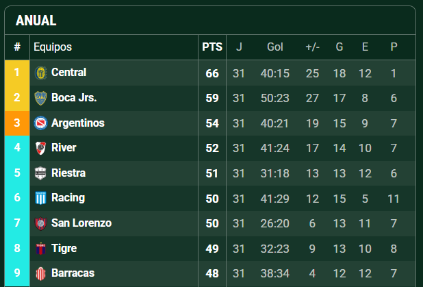 Si Argentinos empata, River necesitará ganar por al menos dos goles de diferencia para igualarlo en puntos y superarlo por diferencia de gol (actualmente +19 para Argentinos y +17 para River). Algo jugado y complicado debido a la complejidad que tiene River en este último tiempo para jugar en el amalfitani.